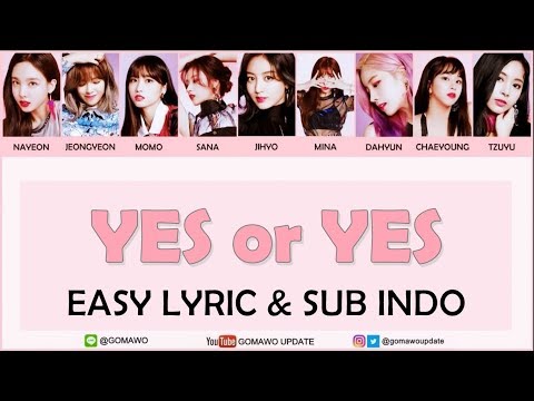 Easy Lyric TWICE - YES OR YES by GOMAWO [Indo Sub] - Lirik Lagu Twice Yes Or Yes - TWICE - YES OR YES Music Video, Korean & Indonesian Easy Lyric Credit: -. Official Audio: TWICE / JYP Entertainment. -. Video by GOMAWO -. Lyric: Color ...